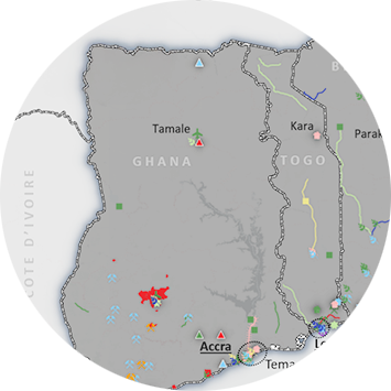 Enfin, la dernière phase du projet consiste à produire un jeu de cartes thématiques figurant les informations renseignées dans la GDB et illustrant la synthèse géopolitique. Les cartes sont pensées et réalisées de façon à permettre une lecture multidimensionnelle de la zone et à fournir des explications géographiques à la problématique posée. La conception des cartes est élaborée pour des supports multiples selon le projet : papiers (A3 & A1), numériques statiques (GeoTiFF, GeoPDF) ou produit dynamique type StoryMap.